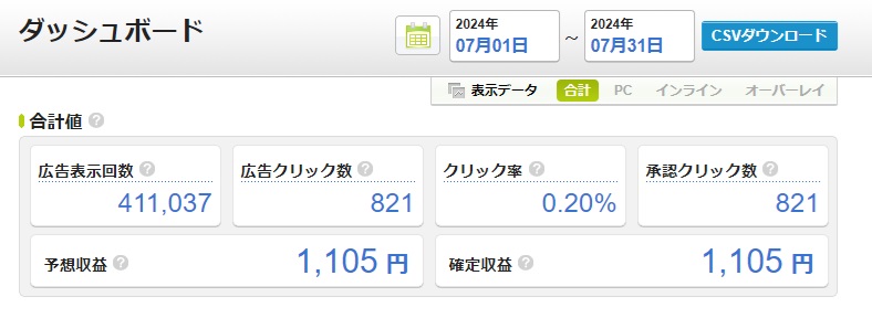 前回が2円で今回が1.3円。無いよりマシだけどあんまり本命アフィリエイトにはできませんね。