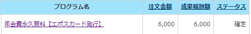カードを受け取り、7月10日に6000円報酬が確定しました。